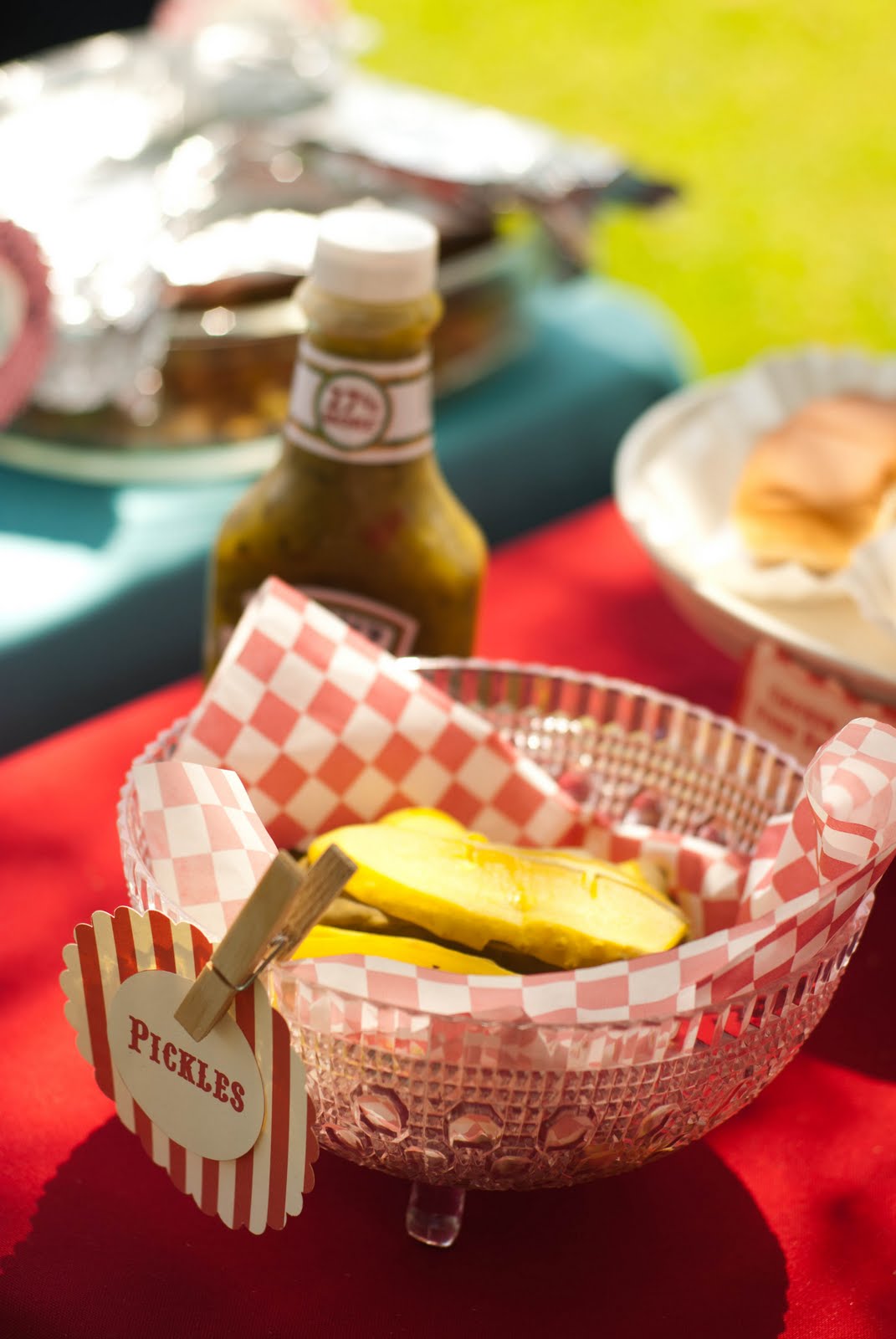 The circus feast also included a Hot Dog Station with a variety of hot dog toppings and hots dogs (turkey, beef, chicken and veggie) AND a yummy potluck table full of circus inspired food!